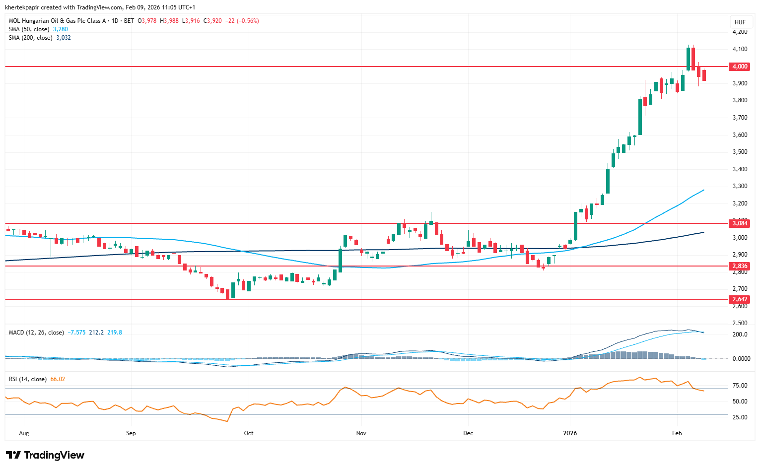 Újabb csúcsokra futott a múlt hét során a Mol részvénye, így már a 4000 forintos szinteken is átjutott rövidebb időre, jelenleg is ennek környékén próbál erőt gyűjteni a részvény. A friss negyedéves számait jövő hét péntek hajnalban teszi közzé a társaság, miközben a befektetők a NIS felvásárlásával kapcsolatos hírekre is várhatnak. Az indikátorok egyébként már némi túlvettség jeleit mutatják, ez pedig óvatosságra is intheti a befektetőket rövidebb távon.