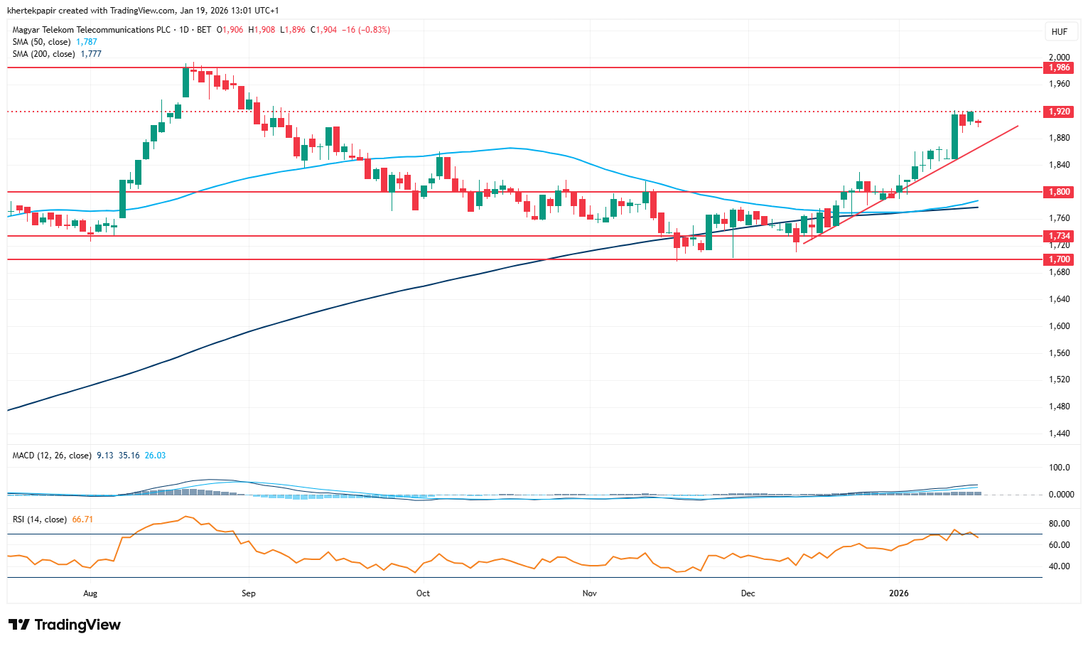 A Magyar Telekom napi grafikonja (2026. 01. 19. 12:46)