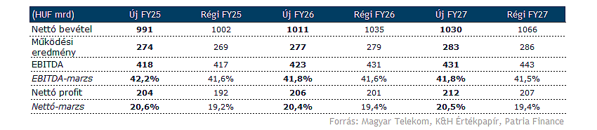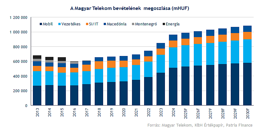 Ugyan a bevételnövekedés üteme mérséklődhet a jövőben, de a javuló költséghatékonyság, és a pénzügyi soron látott csökkenő veszteség hozzájárulhat a profit emelkedéséhez. Az operatív profit elérheti a 274 milliárd forintot idén, amelyben az egyéb bevételek és az előzetesen vártnál alacsonyabb költségnövekedés is szerepet játszik. Ezzel együtt a nettó profit 204 milliárd forint fölé emelkedhet, összhangban a vezetőség 200 milliárd feletti várakozásával. Az erős profittermelés hosszabb távon is fennmaradhat, 227 milliárd forintos eredményt realizálva ezzel 2030-ra.