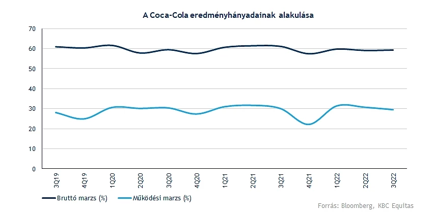 A működési bevételek a 10 százalékos éves növekedés hatására 11,1 milliárd dollárra rúgtak, de ha az organikus bővülést vizsgáljuk, akkor még erőteljesebb, 16 százalékos növekedésnek lehetünk tanúi. Látható tehát, hogy az elmúlt negyedévek során már stabil bevételnövekedést tudott felmutatni a Coca-Cola, amely a jelenlegi piaci környezetben mindenképp pozitív hírnek tekinthető.