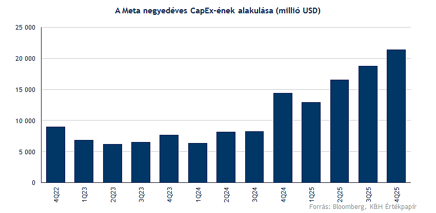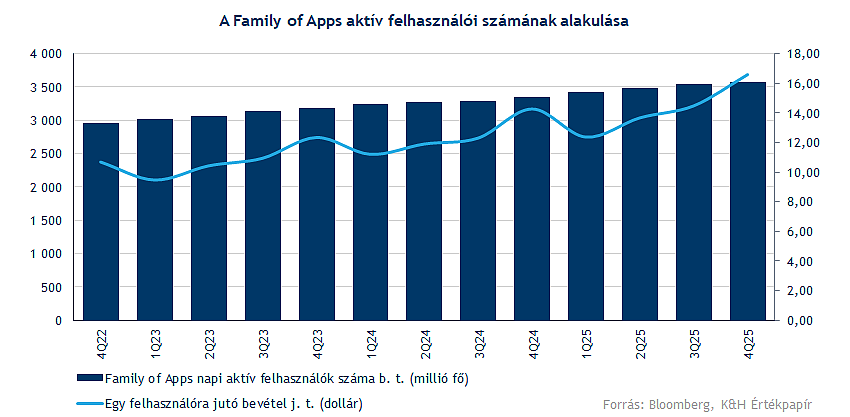 A fókusz tehát változatlanul az AI fejlesztése köré összpontosulhat, így nagyobb mértékű kiadásokra kell számítaniuk idén is a befektetőknek. Tavaly 70 milliárd dolláros CapEx mutatkozott a cégcsoport kapcsán, ennek összege idén 115-135 milliárd dollárra emelkedhet, amely az elemzők óvatosabb becslését is felülmúlja. A teljes költségteher így 162-169 milliárdra nőhet, miközben a vezetőség célja lenne a belső költségek optimalizálása. Emellett kedvező hír a befektetők számára, hogy a menedzsment várakozásai alapján a Reality Labs eredményei is fokozatos javulásnak indulhatnak, ez a cég profitabilitásának javulásában is segíthet, hiszen a negyedik negyedév során még 6 milliárd dolláros veszteség volt látható az üzletágon belül.