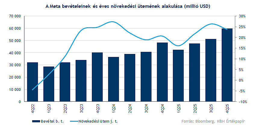 Továbbra is érdemi volatilitást váltanak ki a Meta gyorsjelentései a piacon, azonban a negyedik negyedéves jelentést jobban fogadták a befektetők, mint az ezt megelőző riportot, így nagyobb mértékű emelkedéssel indította a kereskedést a részvény. A befektetők kiemelt figyelmet fordítanak az eredmények alakulása mellett a beruházási kiadásokra is, ráadásul jelen esetben úgy tűnik, hogy a vállalatnak sikerült meggyőzni a közvéleményt, hogy indokoltak az AI beruházásokra szánt tőkekiadások.