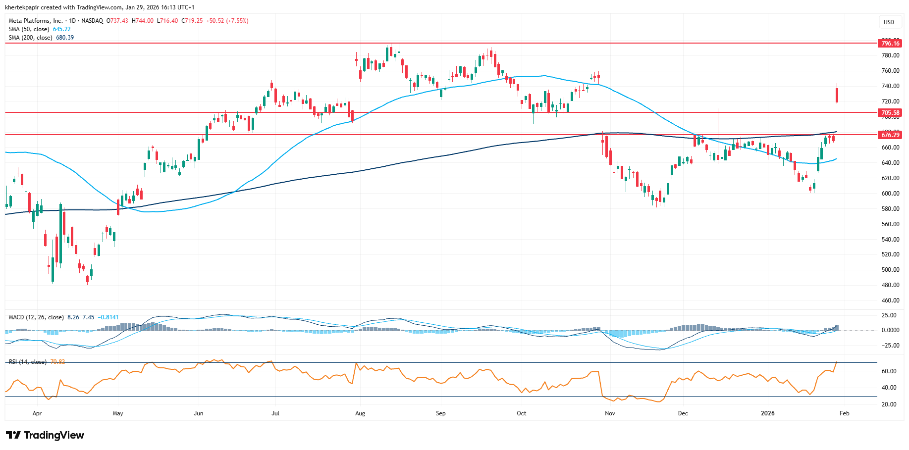 Ismételten erős évet tudott zárni a Meta, ráadásul a negyedik negyedéves eredményei is felülmúlták az előzetes várakozásokat, de a kedvező kilátások, vezetőségi előrejelzések hoztak igazi megnyugvást a befektetők számára. Az AI fejlesztés továbbra is fókuszban maradhat, ennek következtében az ehhez kapcsolódó beruházások mértéke is tovább emelkedhet, amely némi óvatosságra is intheti a részvényeseket. Összességében a reakció pozitív volt a befektetők irányából, így fontos szinteket áttörve indította a mai kereskedést a részvény.