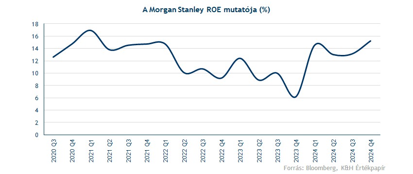 A Goldman Sachs erős jelentése után a Morgan Stanley sem okozott csalódást a befektetőknek, mivel a befektetési bank szinte mindegyik fontosabb soron felülteljesítő tudott lenni 2024 utolsó negyedévében. A kereskedési bevételek közel 45 százalékkal javultak előző évhez képest, de a vagyonkezelési üzletág számaira sem lehetett panaszkodni. A Morgan Stanley profitabilitása sokat javult a negyedik negyedévben, így a részvény árazottsága sem tűnik már annyira feszítettnek, miközben az idei év még további bővülést hozhat a befektetési bankok számára.