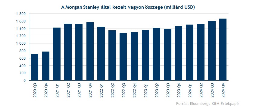 Az utóbbi években a Morgan Stanley egyre nagyobb hangsúlyt fektetett a vagyonkezelési üzletágának bővítésére, ez pedig meglátszik a szegmens számain. A kezelt vagyon összege a negyedik negyedév végére már az 1666 milliárd dolláros szintet érte el, ami meghaladta a már eleve növekedést prognosztizáló elemzői várakozásokat is. Az elmúlt egy év során így 14 százalékos állománybővülést ért el a cég, ebből 56,5 milliárd dollár az utolsó negyedévben folyt be új pénzként. Ugyan 56,5 milliárdnál magasabb, 62 milliárd dollárnyi új nettó pénzbeáramlással számoltak az elemzők, de a piacok felülteljesítésével ennek ellenére is érdemben tudott bővülni a kezelt vagyon összege. A vagyonkezelési ágazat végül 7,5 milliárd dolláros bevétellel zárta a negyedik negyedévet, nem meglepő módon itt is felülteljesítésről beszélhetünk.