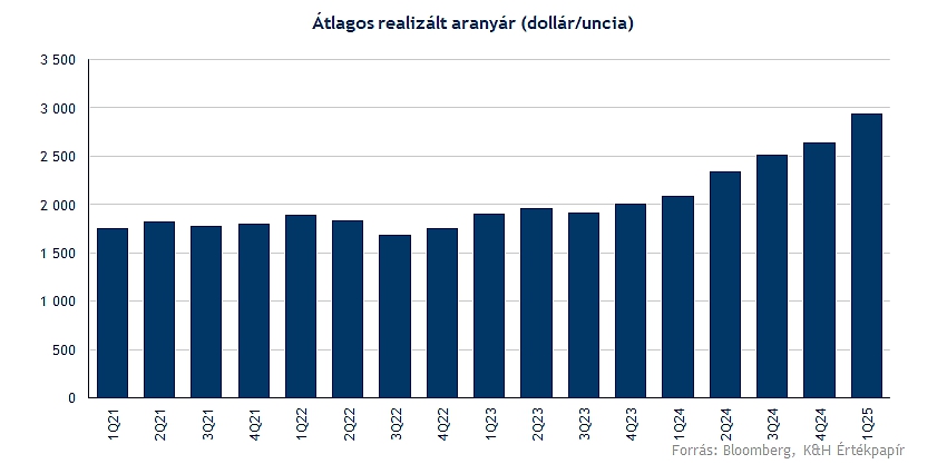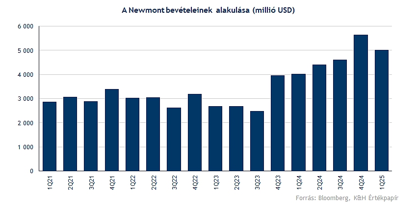 Azonban az eszközértékesítéseket követően az aranykitermelés visszaesett 1,54 millió unciára (ami viszonyításképp az előző év azonos időszakában 1,68 millió uncia, 2024 negyedik negyedévében pedig 1,9 millió uncia volt), és így ez volt a fő oka az egy unciára jutó teljes fenntartási költség (AISC) 14,7 százalékos növekedésének, amely így 1651 dollár/uncia lett. Továbbá a Newmont csökkentette az éves aranykitermelési előrejelzését az eredeti 6 millió unciáról 5,6 millió unciára a Lihir és Brucejack bányák alacsonyabb termelése miatt. De a növekedésben a magasabb realizált aranyár nyújthat segítséget, hiszen az elmúlt negyedévben 2944 dolláros átlagár mutatkozott unciánként, ami 41 százalékos javulást jelent tavalyhoz képest.