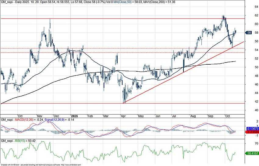 A General Motors napi grafikonja (2025. 10. 21. nyitás előtt)