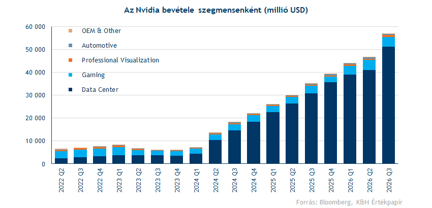 Az Nvidia bevételeit változatlanul a legnagyobb adatközpont szegmens hajtja. Itt 66 százalékos éves növekedés látható, ezzel együtt 51 milliárd dollárra rúgott a szegmens bevétele. A Gaming szegmens a mélypontról való fellendülés után hozni tudja a stabil számokat, amihez valószínűleg a Nintendo Switch 2 játékkonzol új generációjának sikere is hozzájárult. A többi szegmens is növekszik tehát, de ezek hatása eltörpül a teljes eredményhez képest.