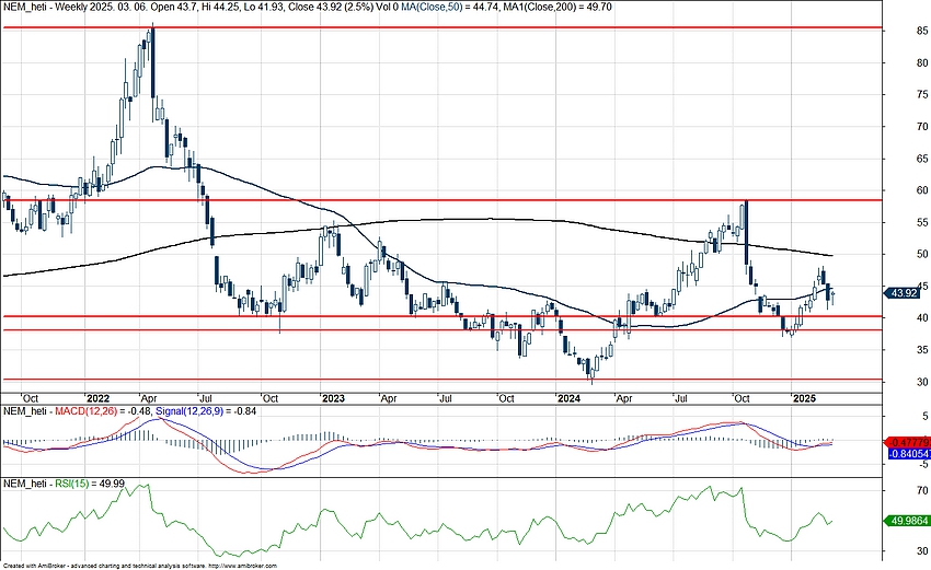 A Newmont heti grafikonja (2025. 03. 07. nyitás előtt)