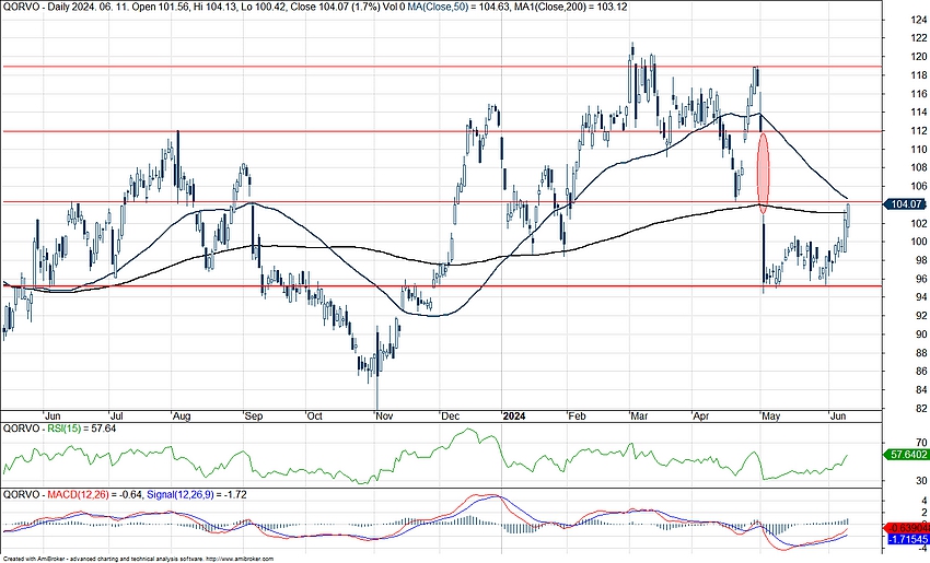 A Qorvo napi grafikonja (2024. 06. 12. nyitás előtt)