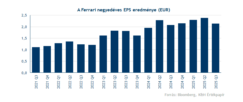 A mai napon a luxusautókat gyártó Ferrari tette közzé legfrissebb eredményeit, amely idén még kedvezőbb helyzetben tarthatta magát, ugyanis a vezetőség többször is megjegyezte, hogy a Ferrari viszonylag ellenálló az amerikai vámokkal szemben, mivel a pluszköltségeket könnyedén átháríthatja a tehetős ügyfelekre. Ennek ellenére a Ferrari idei részvénypiaci teljesítménye kifejezetten gyengének mondható, először a júliusi jelentést követően történt egy nagyobb visszaesés, amikor több eredménysoron is alulteljesítette a cég a várakozásokat. A befektetők emellett negatívan fogadták az októberben tartott befektetői napon, hogy a vezetőség óvatosabb bevétel és EBITDA-előrejelzést tett közzé 2030-ig bezárólag, így a Ferrari részvénye az elmúlt hetekben rég nem látott (2024 februári) szintekre esett vissza.
