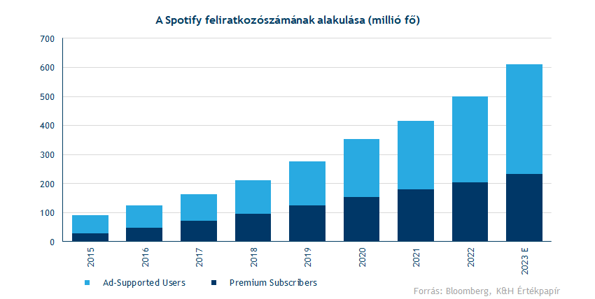Azért nyomás is helyeződik a Spotify-ra, hogy javítson a profitmarzsain, a részvényesek is szívesen látnák már, hogy megtérülő üzletbe fektetették pénzüket. Így az előttünk álló években egyre inkább azon lehet a hangsúly, hogy a kezdetleges feliratkozószám-bővítést követően a már megszerzett előfizetők után befolyt bevételeit maximalizálja a cég. Egyébként feliratkozószám tekintetében nem áll rosszul a Spotify, előrejelzések alapján tavaly 100 millió új felhasználót szerezhettek, és a prémium előfizetők száma is több mint 230 millióra növekedhetett már.