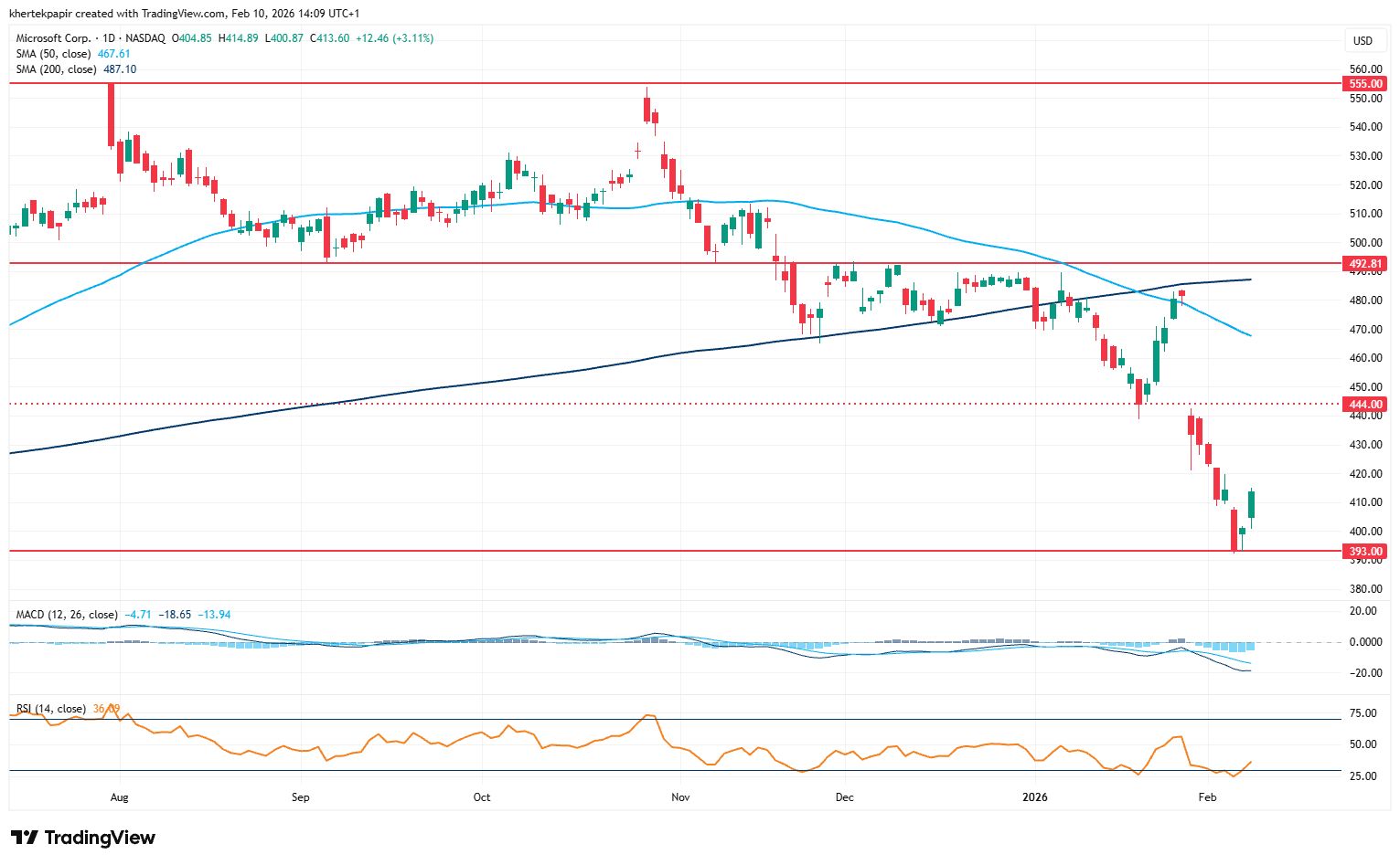 Röviden összefoglalva, a Microsoft idei részvénypiaci alulteljesítése ellenére továbbra is stabil fundamentumokkal rendelkezik, a vállalat szolgáltatásai és vállalati szoftverei iránt nem lassul a kereslet egyelőre. A Microsoft pénzügyileg is kifejezetten stabil eredményeket tud felmutatni, a magas profitabilitásával egyelőre ellensúlyozni tudja a tőkeigényes AI‑beruházások jelentette pluszköltségeket. Bár továbbra is akadnak kételkedő hangok a jelenlegi beruházási fázis jövőbeli megtérülésével kapcsolatban, a részvény a jelentős korrekció után alacsonyabb értékeltségi szintekre esett, miközben a technikai kép is fordulat jeleit mutathatja.