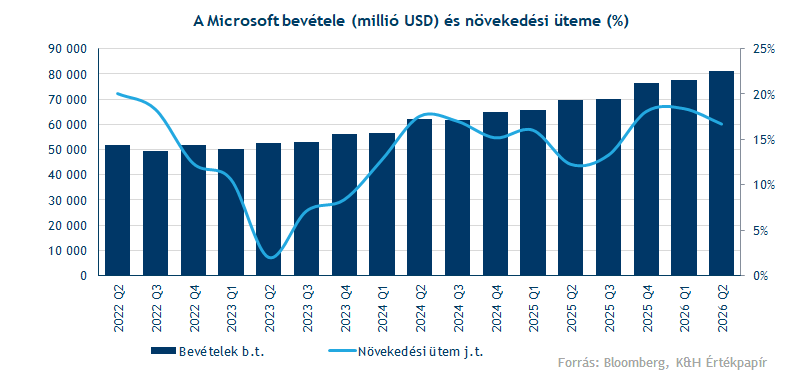 Ha azonban a Microsoft pénzügyi teljesítményét nézzük, a legutóbbi, január végén publikált jelentésében várakozáson felüli eredményekről számolt be a techóriás. A negyedéves bevétel éves szinten 17 százalékot emelkedve először haladta meg a 81 milliárd dollárt, ami ekkora cégméretnél kiemelkedő növekedésnek számít. Amennyiben ezt a növekedési ütemet fenn tudja tartani a vállalat, a 2026-os üzleti évben (amely június végéig tart) az összbevétel először haladhatja meg a rekordösszegű 300 milliárd dollárt.