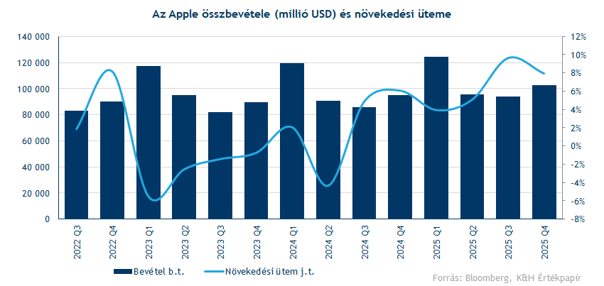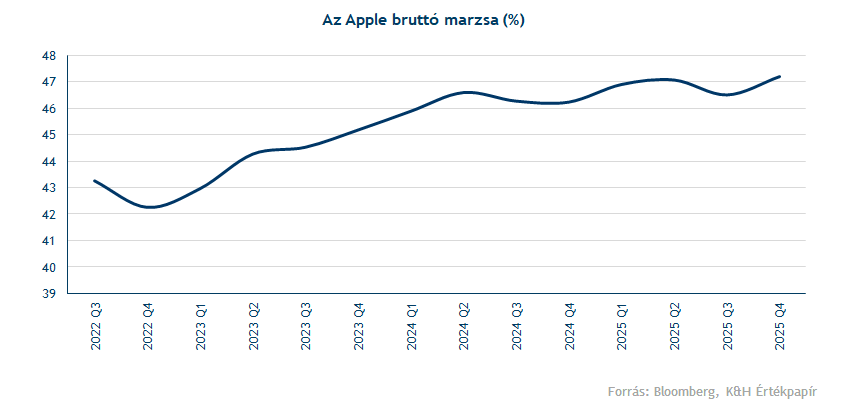Így ami még fontosabb volt a jelentés kapcsán, hogy az előttünk álló ünnepi szezonban milyen bevételekre van kilátás. Ebben pedig pozitív meglepetést hozott az Apple jelentése, a társaság pénzügyi igazgatója szerint 10-12 százalékos növekedésre van kilátás összbevételek terén, ami bőven meghaladja az elemzők 6 százalékos várakozását. Ez tehát jól mutatja, hogy az iPhone 17-es széria iránt nagyon erős a kereslet, ami további optimizmusra adhat okot a részvényesek körében.