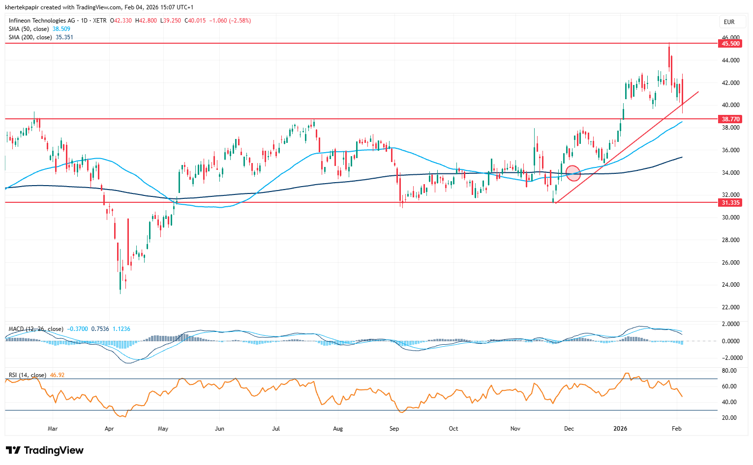 Az Infineon napi grafikonja (2026. 02. 04. 14:52)