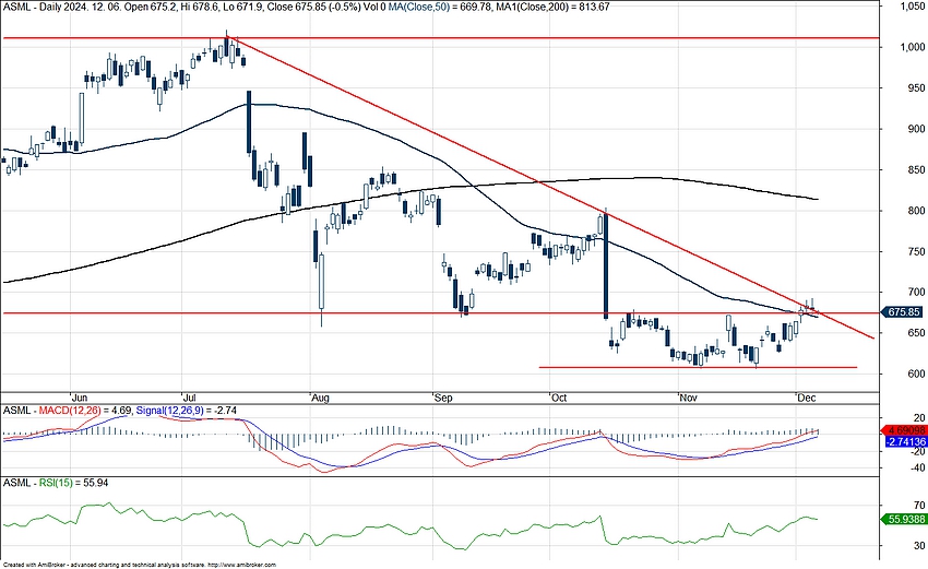 A chipgyártó óriás, az ASML izgalmas technikai szintekre került ismételten, a 670 euró körüli szint fontos ellenállás lehet a részvény számára. A történelmi csúcsokról való visszacsúszást követően tehát technikailag ismét izgalmas kép bontakozott ki, ráadásul fontos védelmi szintekről próbált új lendületet venni a papír az elmúlt időben.