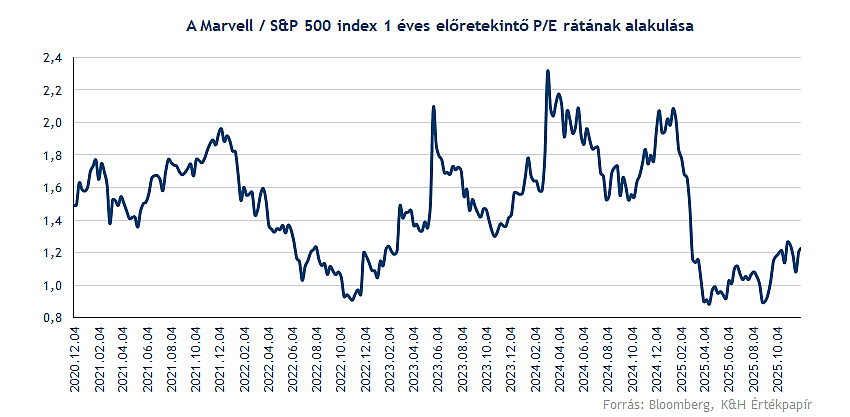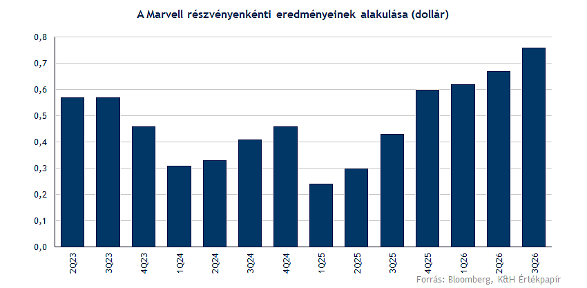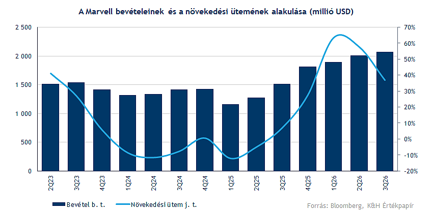 Fundamentumok terén is látni a javuló tendenciát, hiszen a tegnap zárás után közzétett negyedéves gyorsjelentés kellemes meglepetéseket tartogatott, az AI trend kifulladásának nem mutatkoznak jelei, ez pedig hosszabb távon is növekedési lehetőségeket nyithat a Marvell számára. A vállalat részéről érkező előrejelzések is optimizmusról árulkodnak, hiszen az adatközpontokból származó bevételek több mint 25 százalékkal nőhetnek a jövő évi üzleti év során, míg az elemzők ennél óvatosabb növekedéssel kalkuláltak előzetesen. A jelenleg is futó, 2026 január végén záródó üzleti év utolsó negyedévére vonatkozó céges előrejelzések nagyjából az elemzői konszenzus becslésének megfelelő számokat mutatnak, 2,2 milliárd dollár körüli bevétel elérését prognosztizálva ezzel.