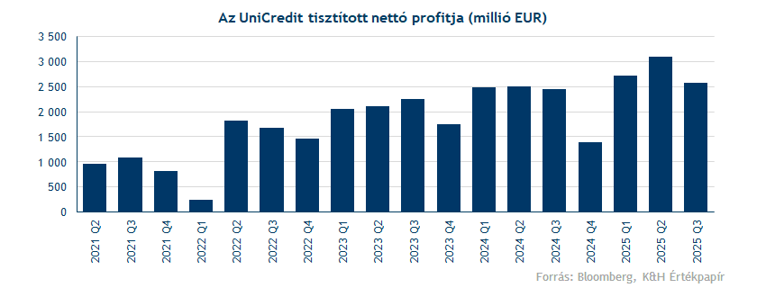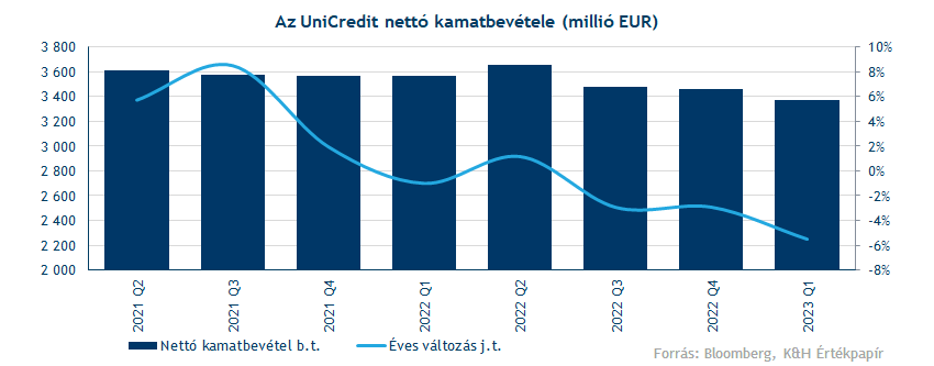 Az UniCredit a harmadik negyedév során összesen 6,17 milliárd eurós bevételt generált, ami ugyan megfelel az előzetes várakozásoknak, de a nettó kamatbevételek tekintetében már elmaradt a várt szintektől a bank teljesítménye. Az UniCredit harmadik negyedéves nettó kamatbevétele így 3,37 milliárd euró volt, ami éves szinten 5,5 százalékos visszaesést jelentett, és éppen alulmúlta a konszenzus várakozását. A kamatbevételek visszaeséséért egyrészt az EKB idei kamatcsökkentése okolhatóak, amik negatív hatással voltak az európai bankok kamatmarzsaira, de volumen oldalról sem tudott növekedést elérni az UniCredit, a teljes hitelállomány évi 3 százalékos visszaesését mutatott a harmadik negyedévben.