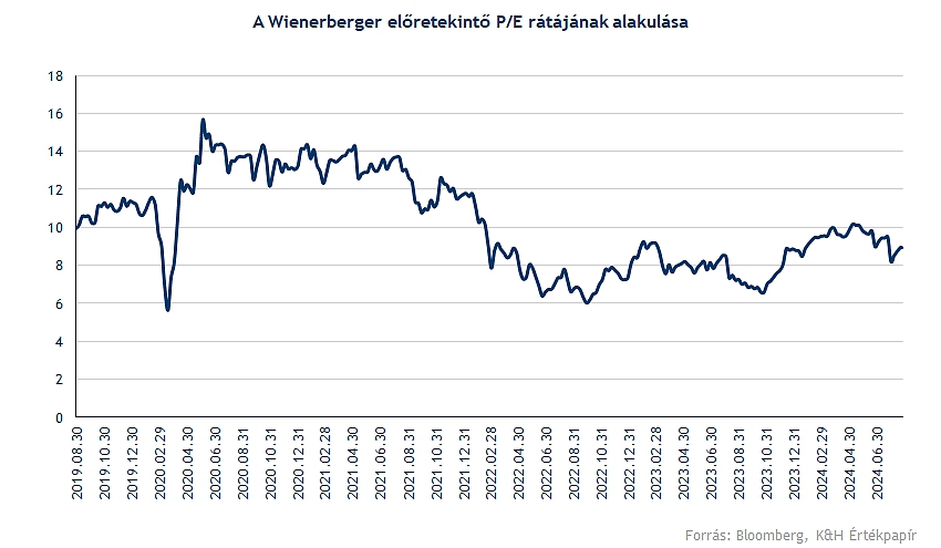 Jelenleg a Wienerberger előretekintő P/E rátája 9 körül mozog, amellyel a versenytársak alatti értékeltségről beszélhetünk. Európában a többi építőanyag-gyártó cég részvénye 14-15 körüli. Ezzel főleg inkább alulértékeltség látható, figyelembe véve a hosszabb távú növekedést is.