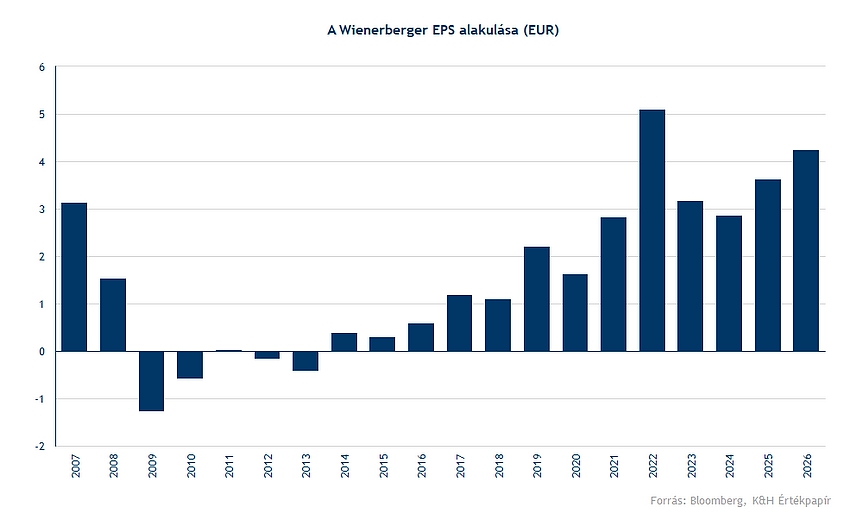 Ugyan az építőipar Európában és az Egyesült Államokban is lassulást mutat, a következő időszak a helyreállásról szólhat, amelynek jelei a CEE régióban már láthatók is. A Wienerbergernél is stabil növekedés látható az elmúlt években, és a piac helyreállásából profitálhat is a cég. Az EU-s célzott támogatások szintén segíthetik a növekedést, valamint felvásárlásokon keresztül is növekedhet a vállalat. A részvény értékeltsége a stabil fundamentumok ellenére is a szektor alatti, emiatt kereskedési ötletet fogalmazunk meg a részvényre.